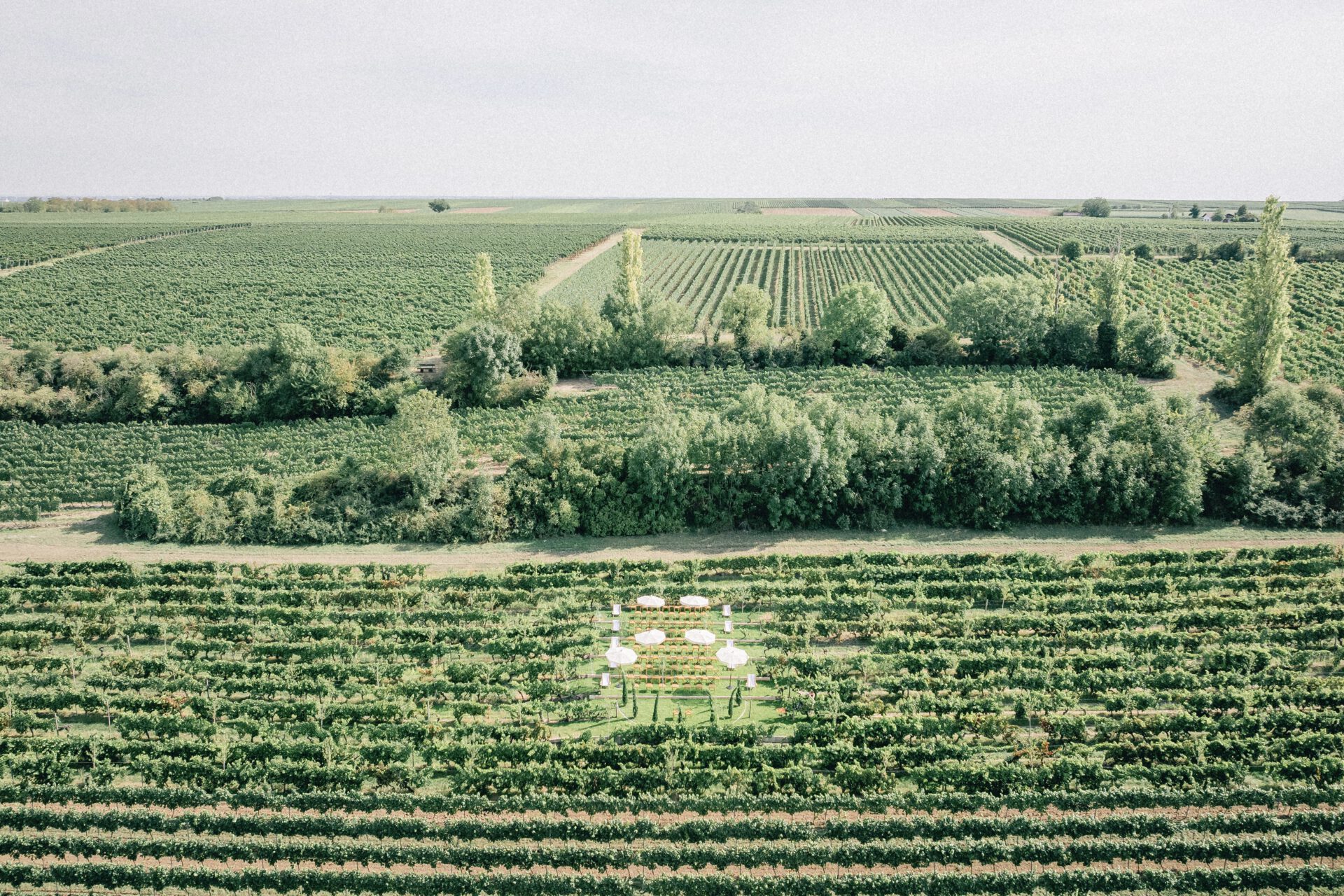 Im Frühjahr öffnen die Mandelbäume zwischen den Reben ihre Blüten und tauchen die Landschaft in sanftes Rosa und Weiß. Später im Jahr tragen die Stöcke volle Trauben, das Licht wird weicher und der Weinberg zeigt seine ganze Fülle. Von März bis Oktober verändert sich die Kulisse stetig und jede Zeit hat ihren eigenen Charme für eine einzigartige Trauung.