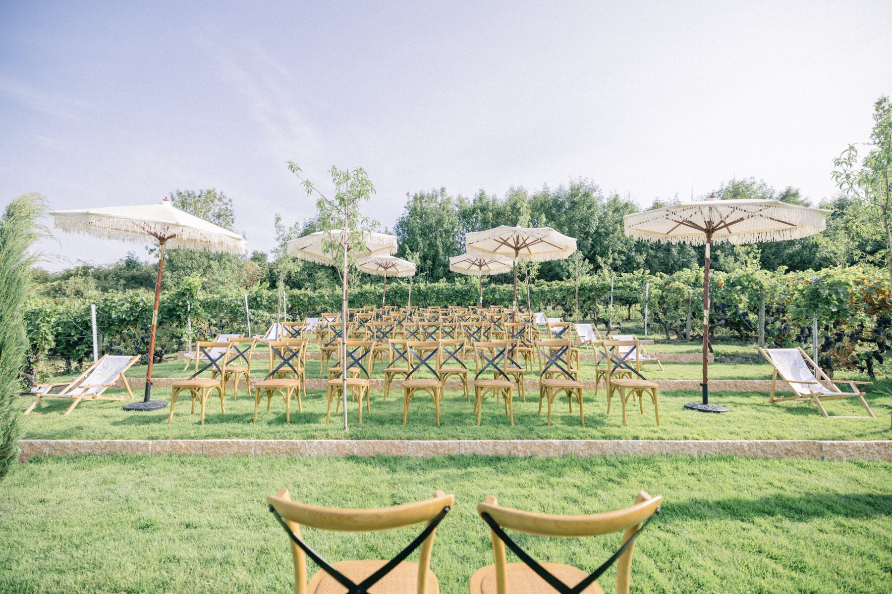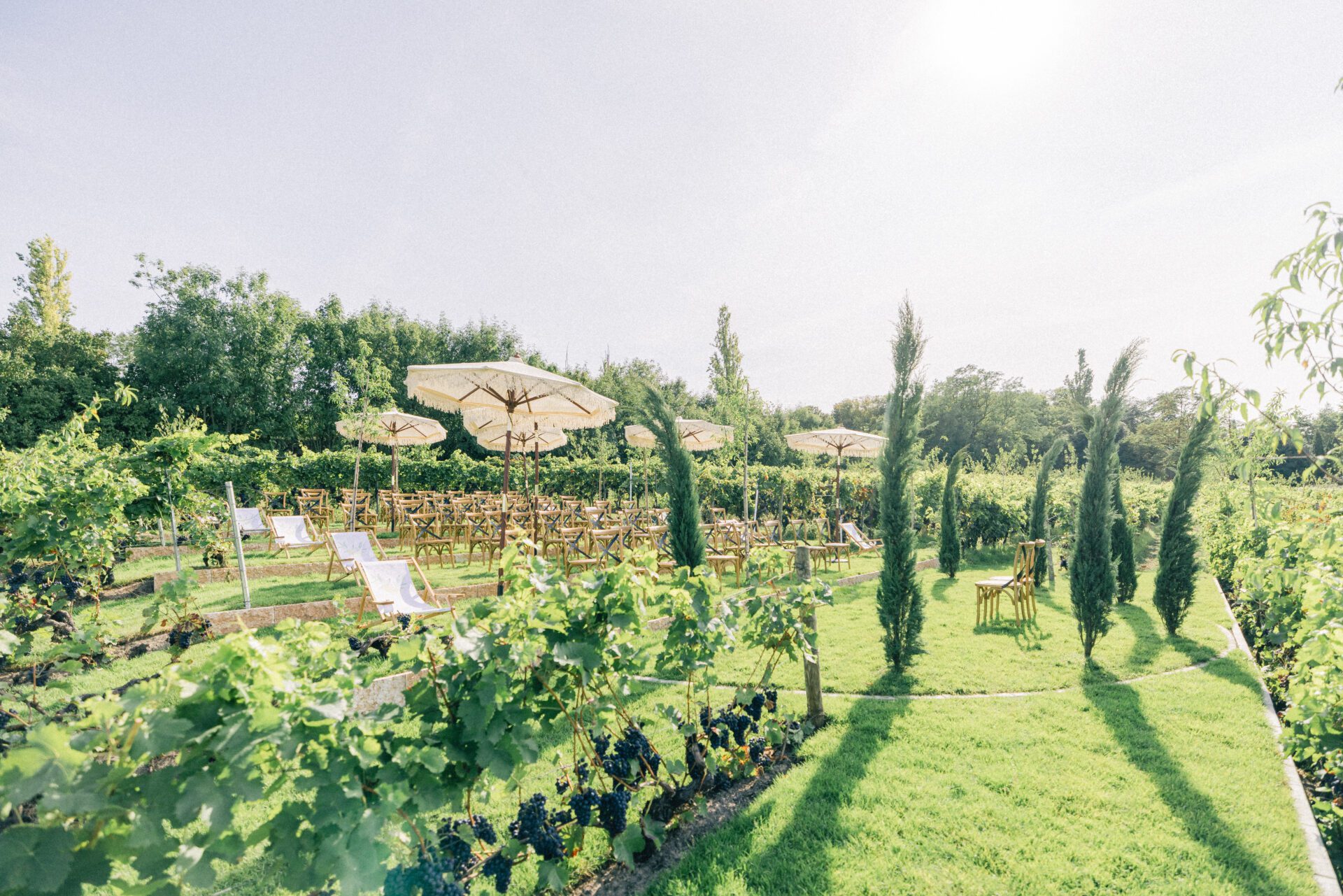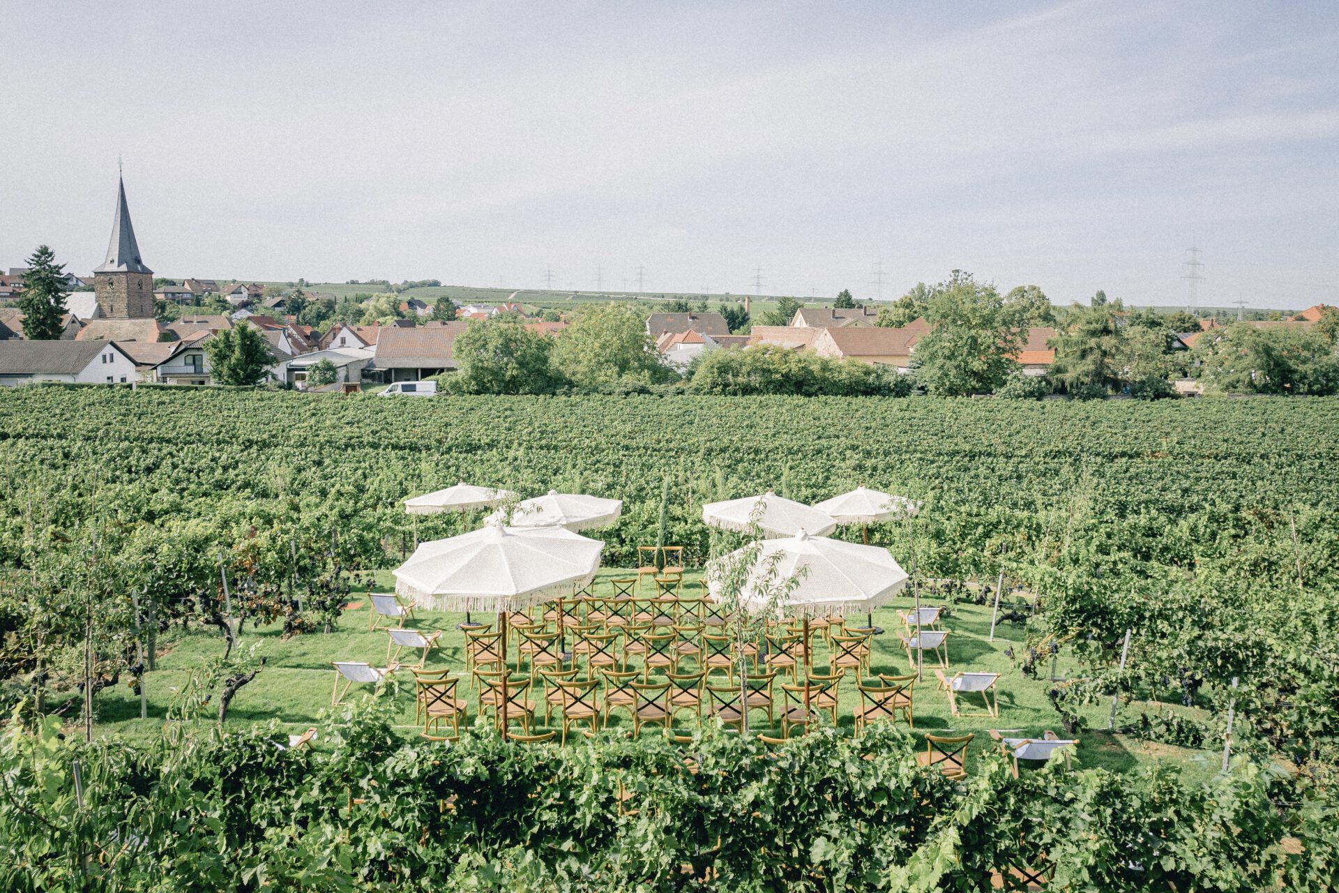 Der neue Trauplatz ist Teil unserer Location Toskanischer Garten & Orangerie. Dadurch bieten wir die Wahl: eine Trauung im mediterranen Garten oder inmitten der Weinreben. Beide Orte liegen direkt beieinander und doch fühlt sich jeder ganz anders an. Der Garten bietet Weite und mediterranes Flair, der Weinberg Ruhe und Intimität.